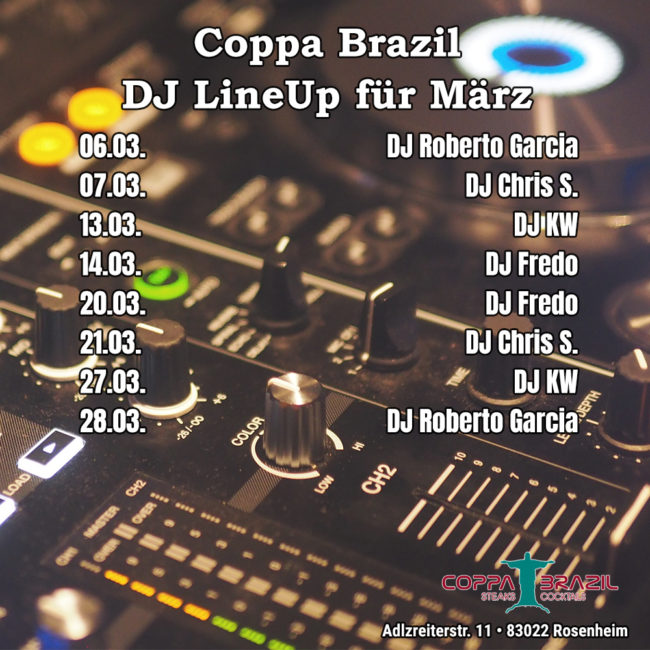 Auch im März sorgen unsere DJs wieder für ein angenehmes Ambiente mit der passenden Hintergrundmusik zu Euren Gesprächen… #coppabrazil #coppabrazilbar