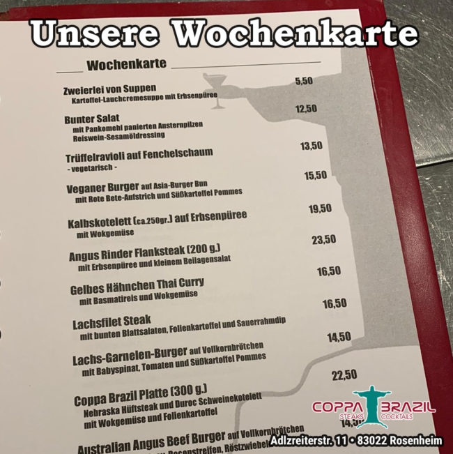 Unsere neue #Wochenkarte ist da. Wir wünschen schon mal Guten Appetit 🙂 #coppabrazil #coppabrazilrestaurant