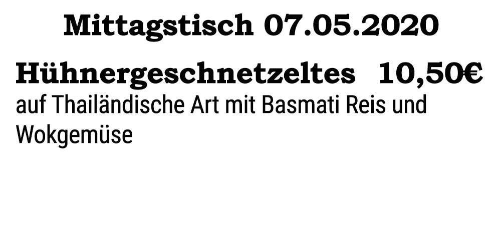 Unsere Mittagsgericht heute: Hühnergeschnetzeltes auf Thailändische Art mit Basmati Reis und Wokgemüse 10,50 EUR